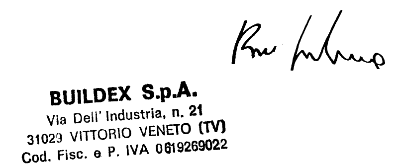 BUILDEX s.p.a. - Via dell'Industria, 21 31029 VITTORIO VENETO (TV) Telefono 0438/9134 Telefax 0438/913594 |